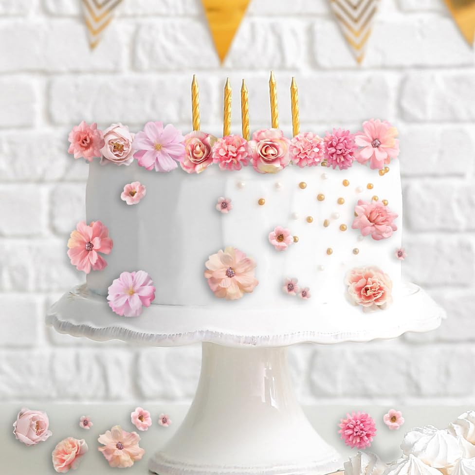 Faux Flower Heads Small Silk Artificial Flower DIY Fake Mini Flowers Rose Daisy Multicolor Flowers Craft Supplies for Wedding Party Wreath Graduation Season Party Home Decor (45, Pink)