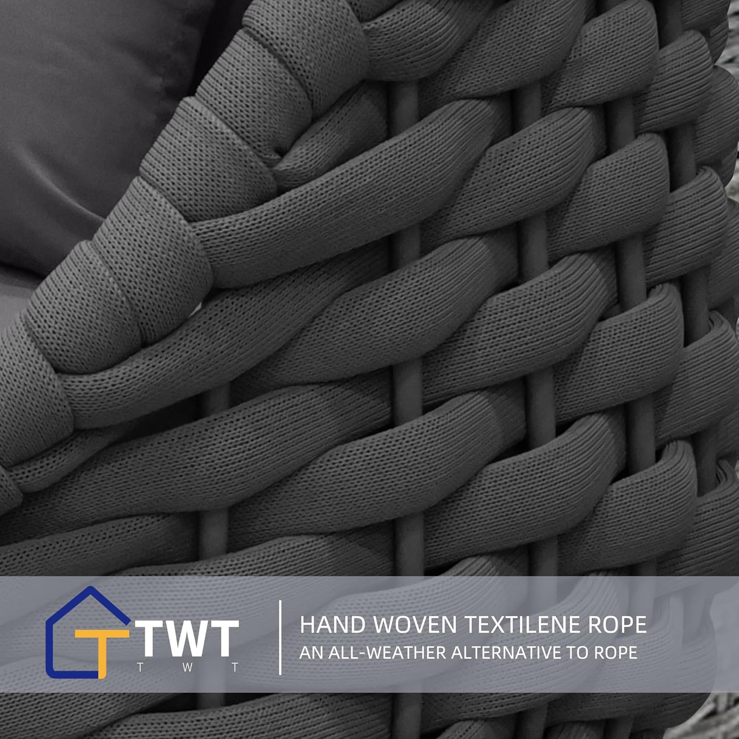 - NO required assembly & easy to clean:Our outdoor couch NO required assembly, just take them out and use. TWT patio chairs’ seat are easy to clean and polyester rope relatively soft. No need to take more extra special care to maintain patio couch