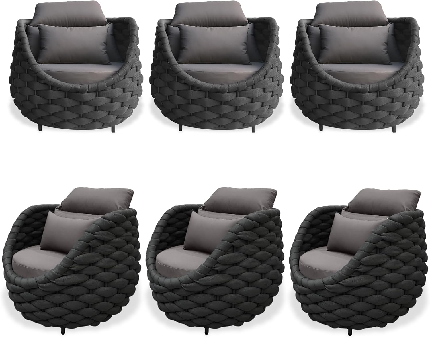 TWT 6 Pieces Patio Sofas All-Weather Rope Balcony Furniture with Cushions & Pillows, Patio Couch Outdoor Patio Furniture Set for Indoor, Balcony, Backyard, Poolside, Dark Grey