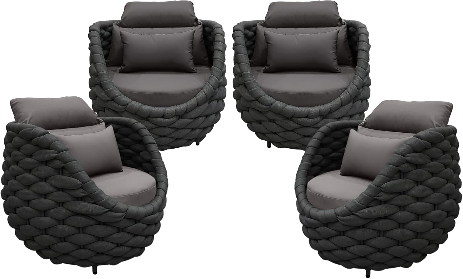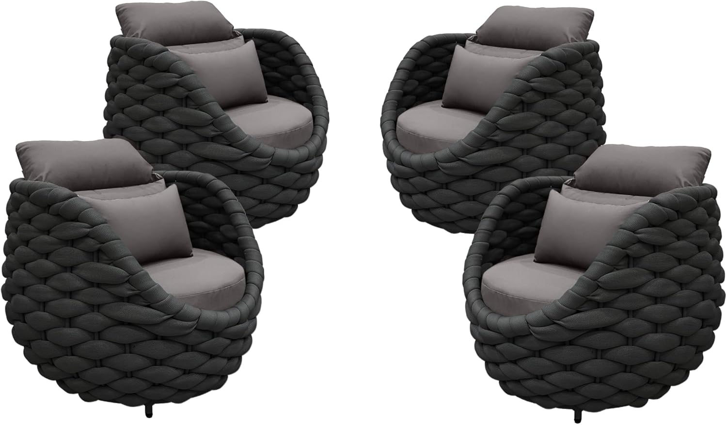TWT 4 Pieces Patio Sofas All-Weather Rope Balcony Furniture with Cushions & Pillows, Patio Couch Outdoor Patio Furniture Set for Indoor, Balcony, Backyard, Poolside, Dark Grey