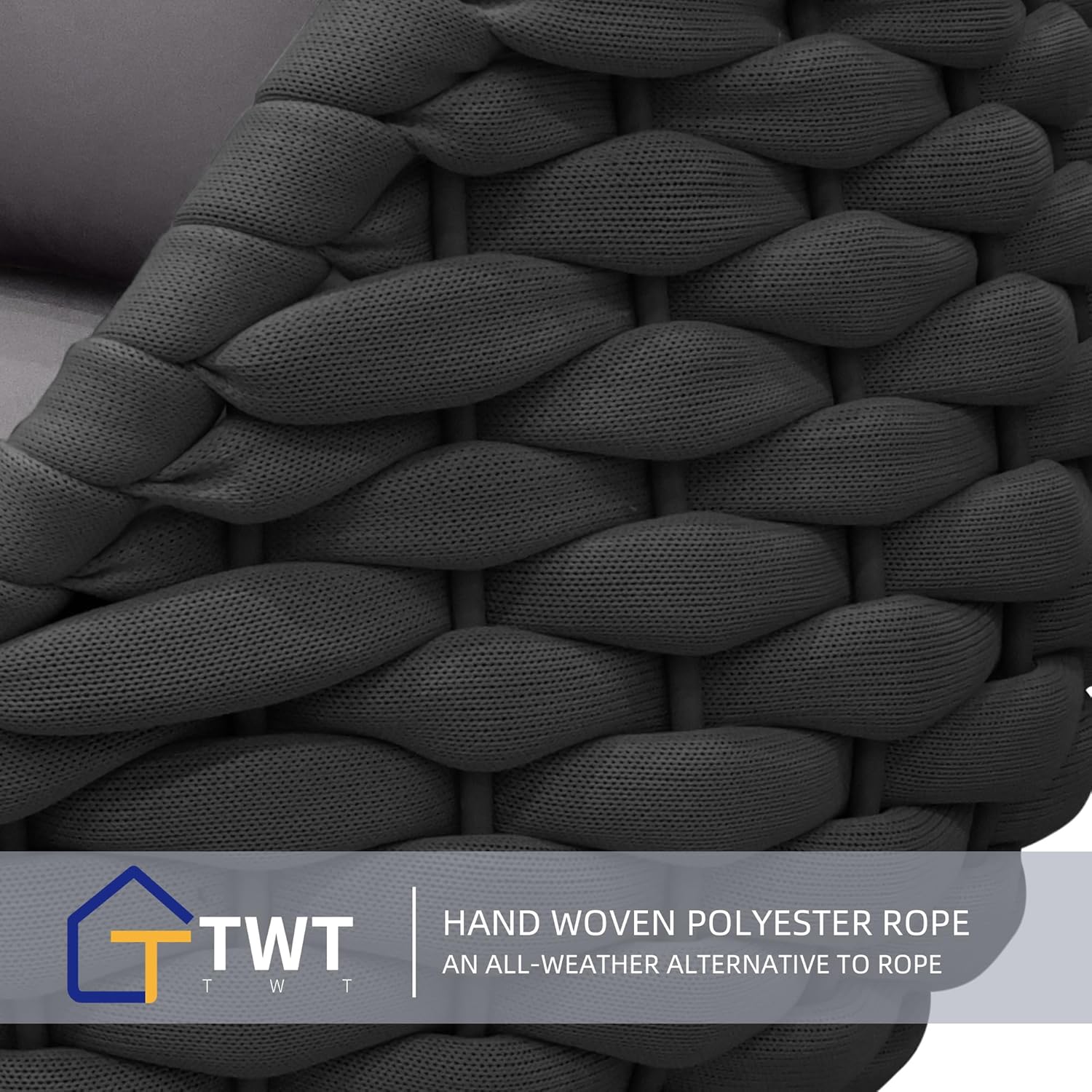 - NO required assembly & easy to clean:Our outdoor couch NO required assembly, just take them out and use. TWT patio chairs’ seat are easy to clean and polyester rope relatively soft. No need to take more extra special care to maintain patio couch