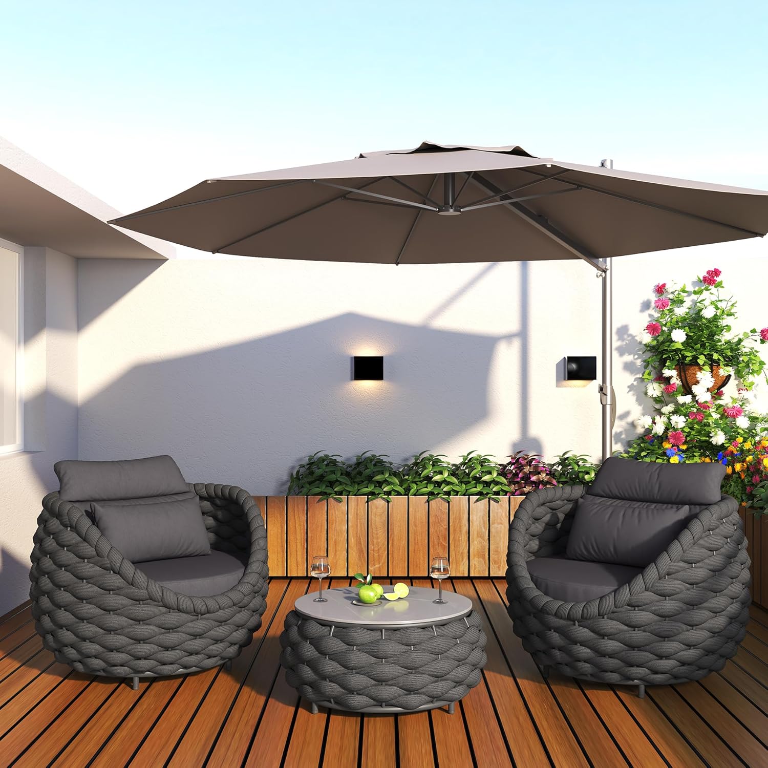 - Sturdy & Durable:TWT outdoor chairs set of 2 with high quality aluminum alloy,no rust,no deformation,hand woven polyester rope are strong enough to withstand all weather variations.Outdoor sofa cushions balance well with sturdy frame