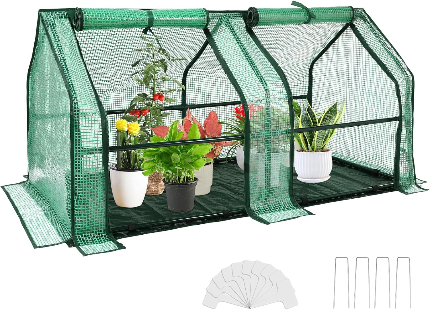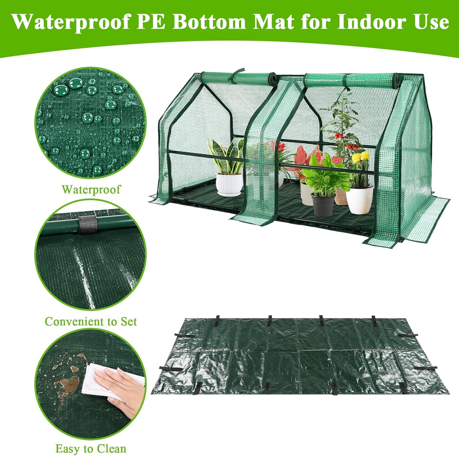 - With Waterproof Mat: Our green house for plants comes with waterproof mat, easy to use, avoid dirtying the ground when watering or pruning plants, and it can effectively keep warm when the temperature is low