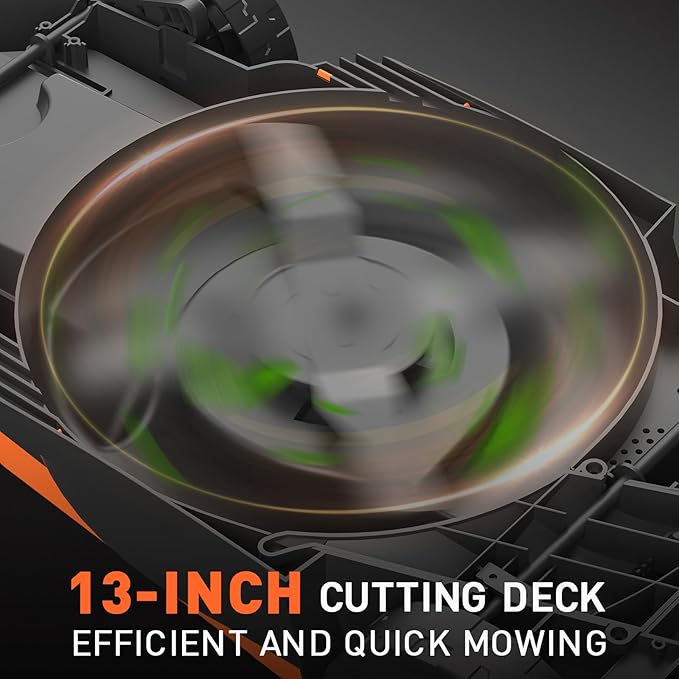 - Brushless Motor-This electric lawn mower features brushless motor with low noise and low vibration. It not only provides powerful power, but also avoids wear on the motor from carbon brushes, thus making the battery mower last longer and lower maintenance cost.