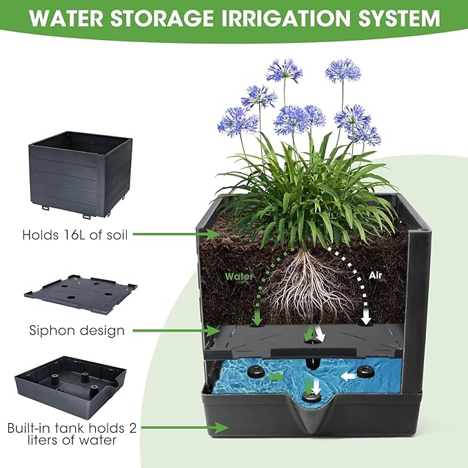 - 🍅WITH A SELF-WATERING SYSTEM:Display your favorite flowers or plants with this convenient self-watering tomato planter! Tomato planter with trellis has a reservoir at the bottom, which keeps the soil continuously moist in the hot summer, without daily watering and less maintenance. Plants grow according to their own needs and get the nutrients they need from the reservoir. The self-watering function is always the savior of thirsty tomatoes and other plants.