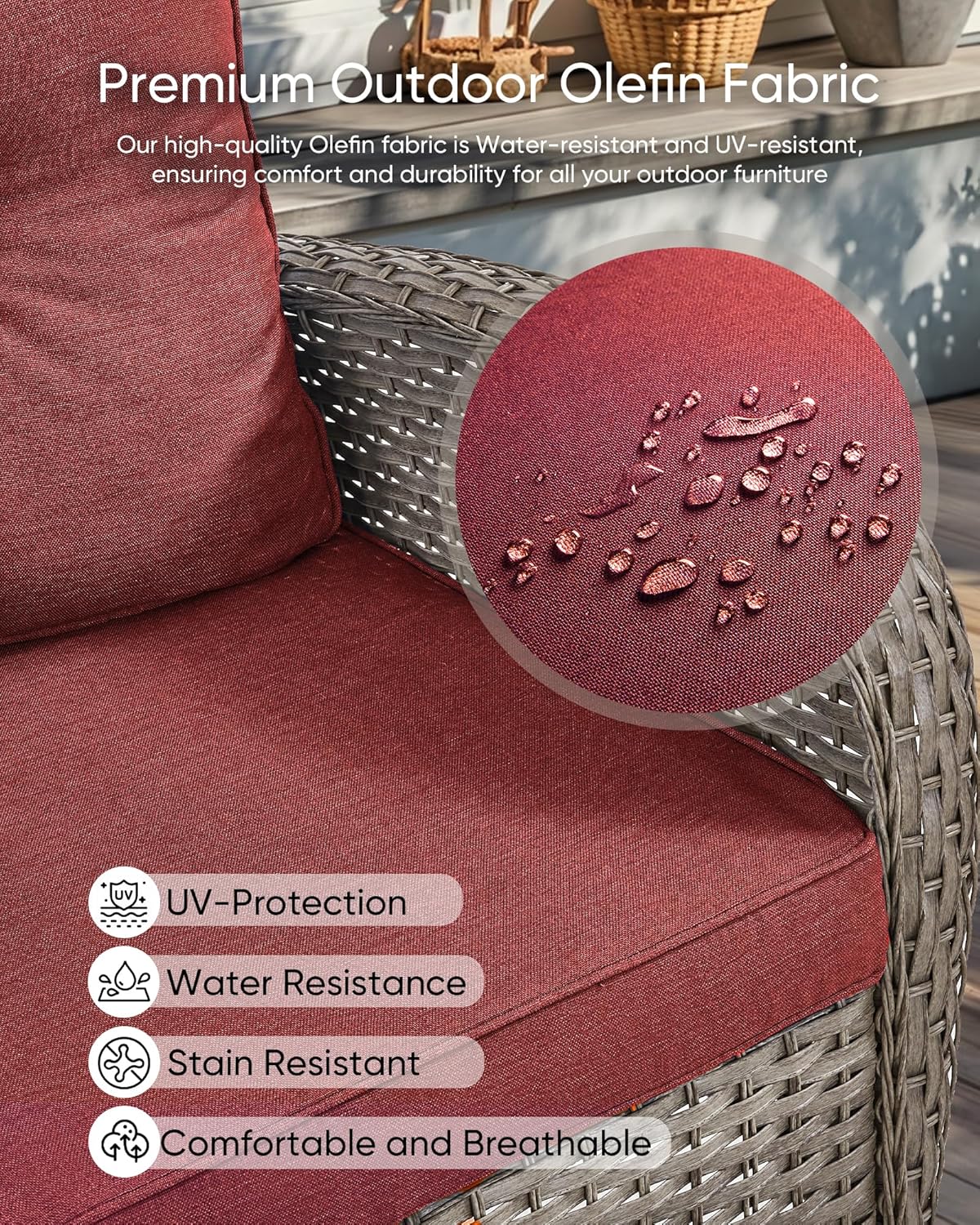 HUMMUH 2-Person Outdoor Glider Bench-All-Weather Wicker Patio Double Swing Rocking Chair Patio Loveseat for Deck Lawn Porch Balcony Poolside-Grey/Red