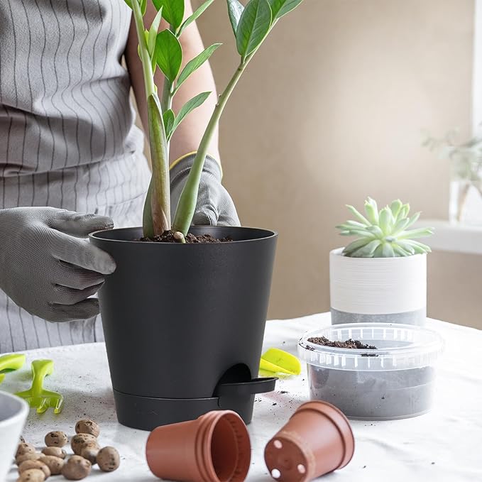 5 Pack 5 inch Self-Watering Pots, African Violets Planter with Drainage Holes and Reservoir, Black Plastic Planter for Indoor Outdoor Plants Flowers and Houseplants Black, 5 inch 5 pcs