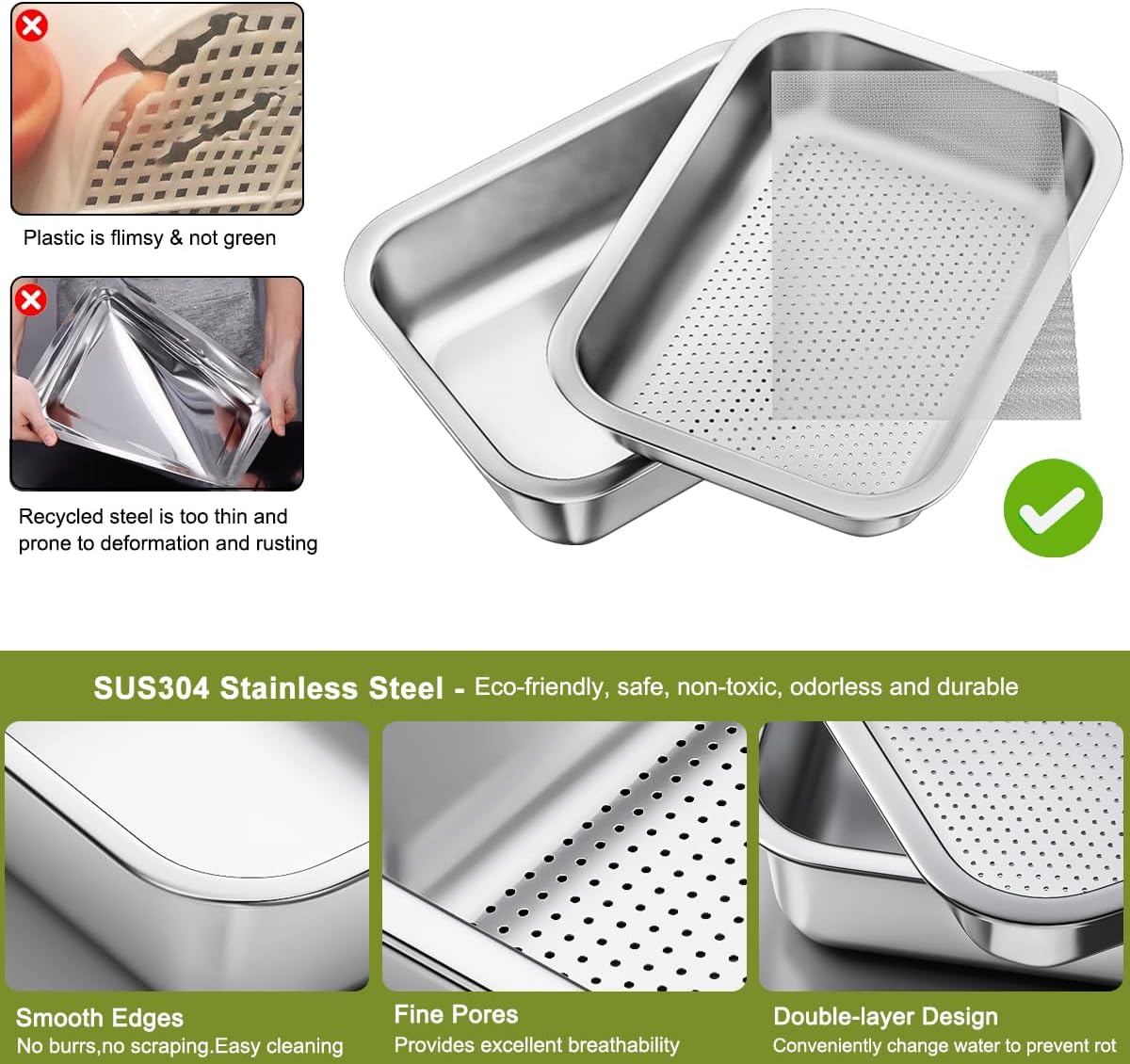 - DURABLE & STURDY 304 STAINLESS STEEL - All parts of our seed sprouting trays are made of rust-resistant, high quality stainless steel, which is safe, non-toxic, odorless and durable to use. Includes 2 Mesh Sprouting Trays, 2 Base Trays and 2 Fine Mesh.