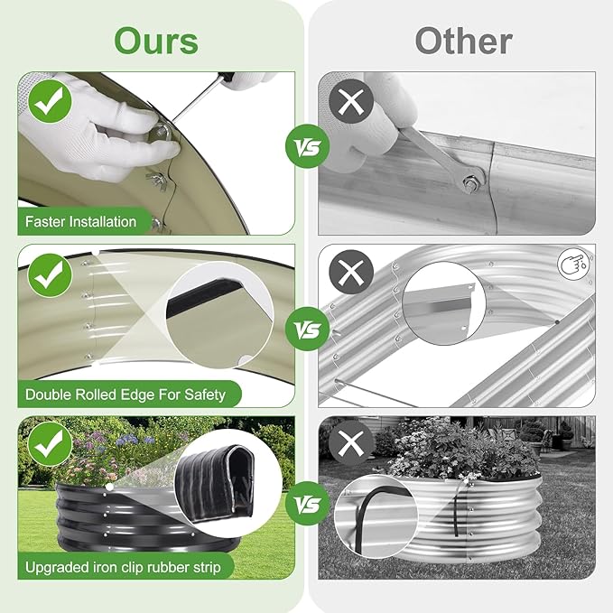 - 【Upgrade Quality & Structure 】The raised garden bed is made of thick galvanized metal with a surface spray coating, which is rust proof and anti-corrosion. Can be used for a long time. The Round design ensures uniform surface force and prevents deformation. More durable than other raised planter box, becoming a good helper for your garden