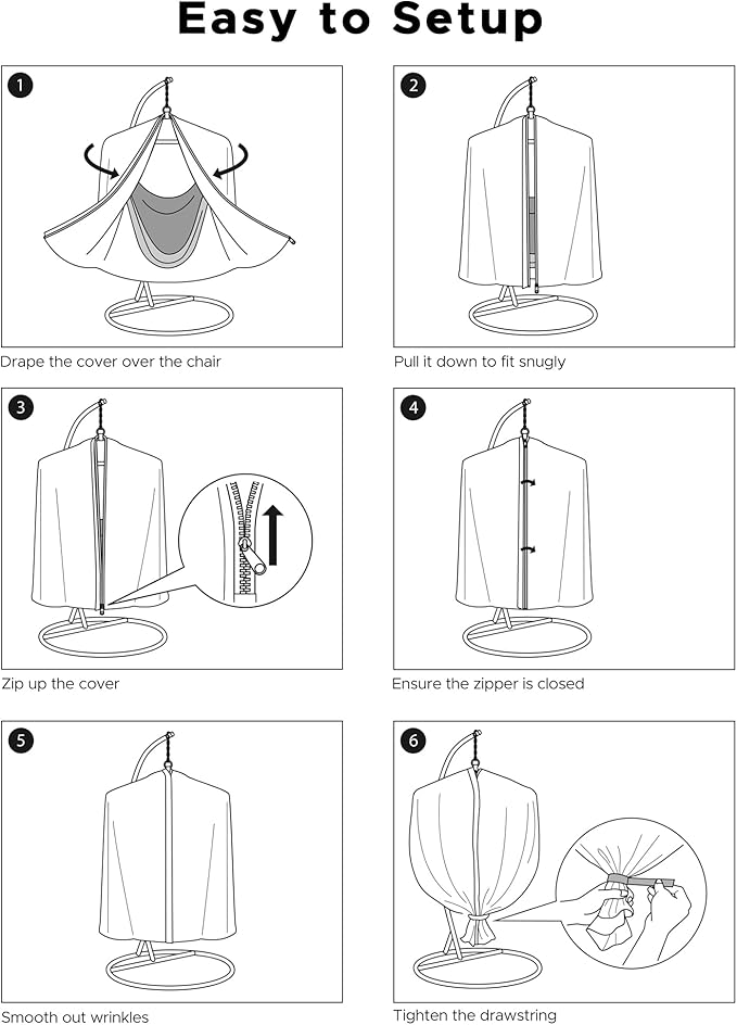 - Weather-Resistant Waterproof Cover: Protect your hammock chair when not in use with the included waterproof cover. Designed with a Zipper Waterproof Flap and magic tape bottom design, the cover keeps your chair dry, clean, and safe from rain, dust, dirt, and UV damage, prolonging the life of your swing