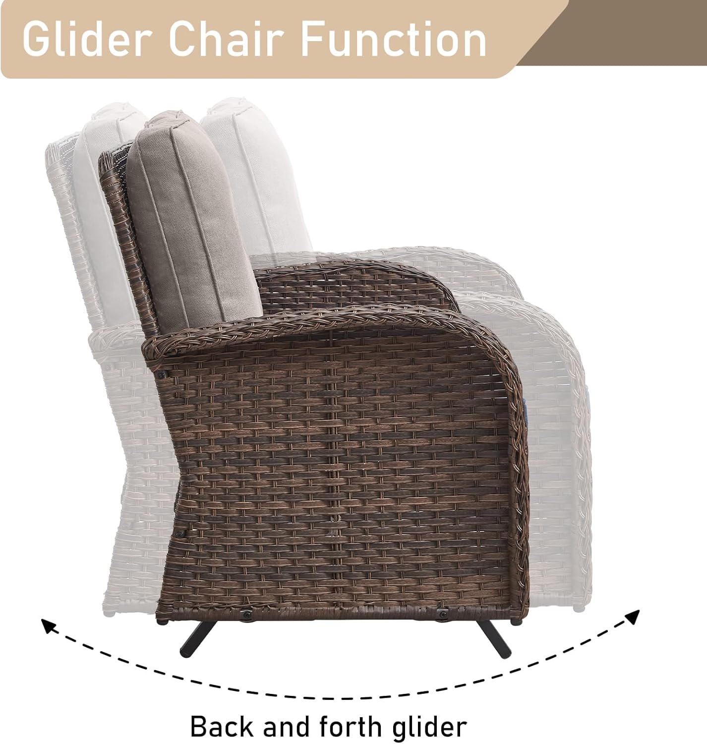 HUMMUH 7-Piece Patio Furniture Set with Fire Pit,Wicker Patio Glider Loveseat Outdoor Swivel Rocker Chairs with Ottomans for Backyard,Poolside,Deck