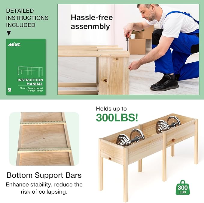 MIXC Wooden Raised Garden Bed with Legs, 72”L X 23”W, Elevated Reinforced Large Planter Box for Vegetable Flower Herb Outdoors
