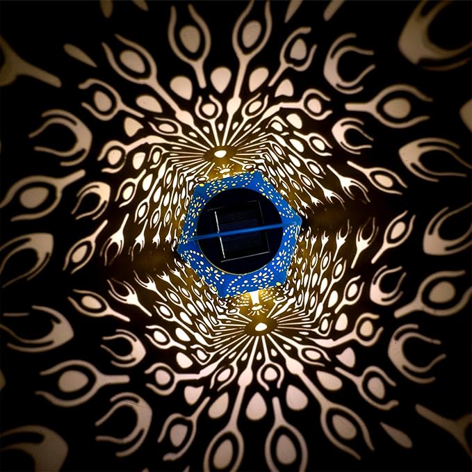 - Unique design: vintage cut-out design and beautiful blue colour with gorgeous peacock pattern, the outdoor lantern emits a bright and warm light at night, adding a nice ambience to the surroundings
