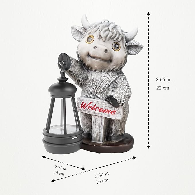 - Wide Application: Highland Cow Outdoor Solar Figurine Lights have a wide range of applicability; you can place them in your front yards, lawns, patios, porches, front steps, balconies, flower beds, stairs, poolside, potted plants, windowsills, or indoors as ornaments.