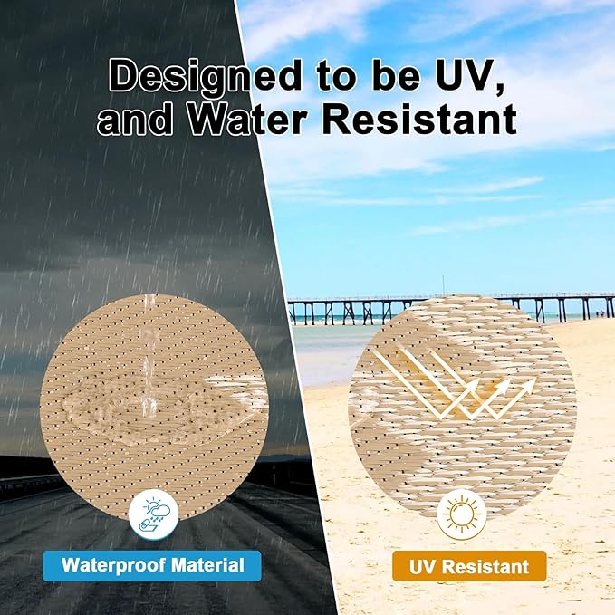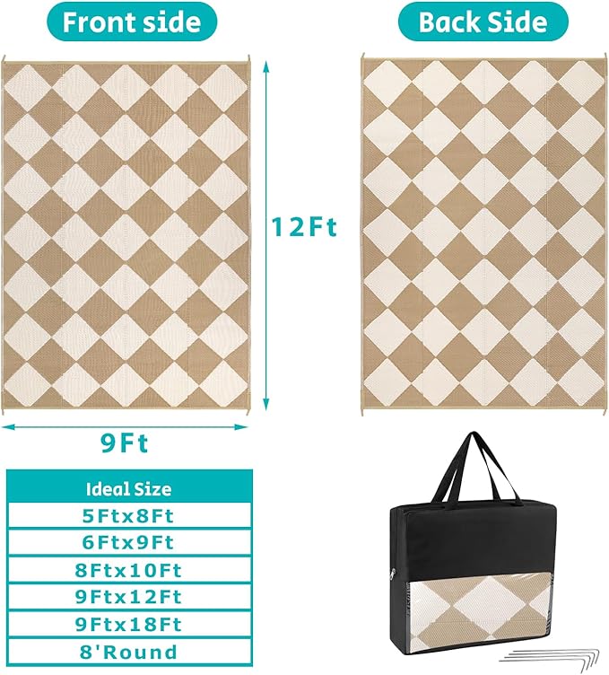 - Versatile Outdoor Carpet: The indoor outdoor plastic rugs have multiple choice in different colors(4'x6',5'x8',6'x9',8'x10',9'x12',9'x18',8'round), is ideal for a variety of indoor outdoor activities,like patio mat, deck rug, garden rug, beach mat, picnic mat, BBQ party mat, rv camping rug,pool rug,outdoor doormat,garage rug,front door mat,allowing you to have plenty of imaginable space for more fun.