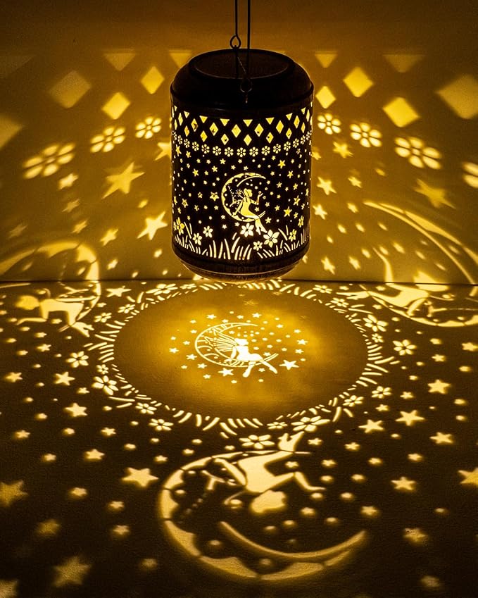- 【Elegant Garden&Fall Decor】Solar lantern features a stunning antique bronze finish.The intricate fairy cut-out design projects beautiful light patterns, creating a magical and enchanting ambiance. Perfect for garden,patios, yard,lawns, backyards, porch