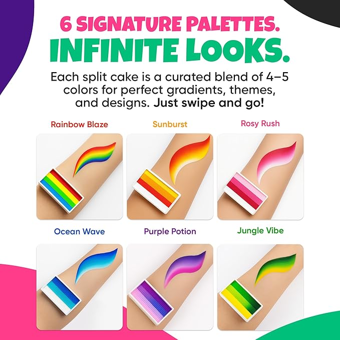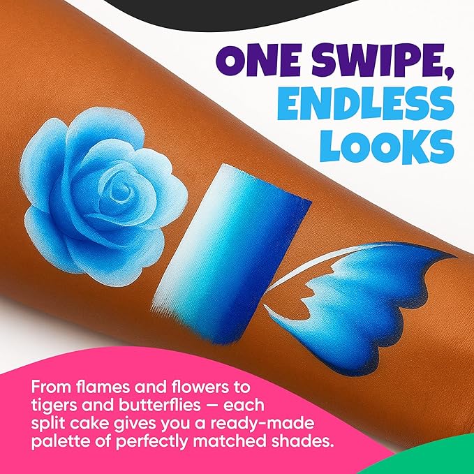 - ๐จ ๐๐ข๐ ๐ฃ๐๐๐ง๐ ๐ฆ๐ฃ๐๐๐ง ๐๐๐๐ ๐๐๐๐ ๐ฃ๐๐๐ก๐ง ๐๐๐ง โ All-in-one face painting set with everything you need for hours of fun! Includes 6 multi-color split cakes (24 vibrant colors in total) plus a wide coverage brush, fine detail brush, and 2 blending sponges. This comprehensive ๐ธ๐ถ๐ฑ๐ ๐ณ๐ฎ๐ฐ๐ฒ ๐ฝ๐ฎ๐ถ๐ป๐ ๐ธ๐ถ๐ has all the tools for creating endless imaginative designs right out of the box.
