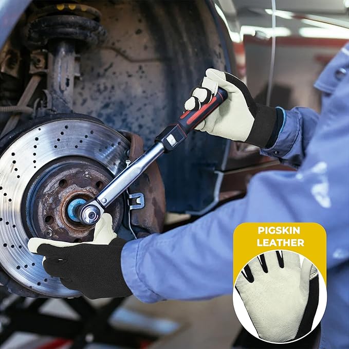 - Premium Quality Materials & Design: Crafted from 100% pigskin leather and 100% spandex, these leather work gloves offer superior puncture, heat, and cut resistance, along with exceptional flexibility and comfort. Both materials are highly breathable, preventing hand sweat during long work hours