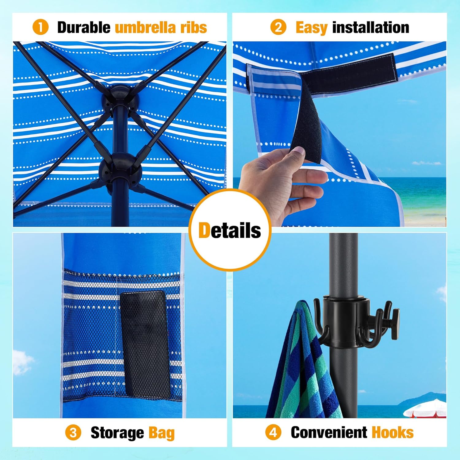- Durable & Stable: Beach canopy for sand made of durable polyester fabric that is not afraid of stretching and tearing, it can still recover after long use. Frame adopts thicken rods, which are safer, more durable and rust-free, the beach tent is equipped with 4 ground pegs and windproof ropes. The beach shade canopy will stand up to average wind at any angle.