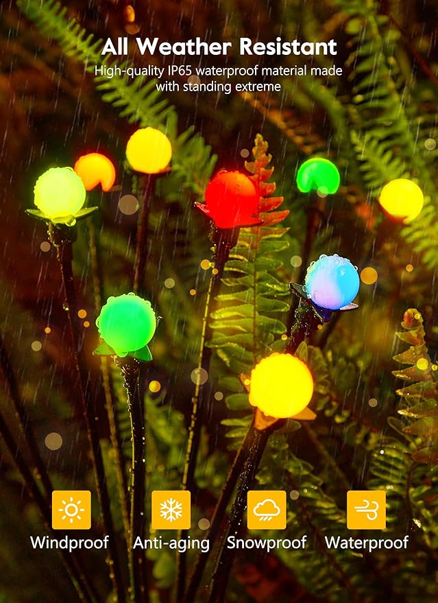 Brightown Solar Garden Lights Outdoor- 4 Pack 48 LED Solar Firefly Lights with 7 Colors Changing, Sway by Wind, Waterproof Solar Outdoor Lights, Solar Lights for Outside Yard Walkway