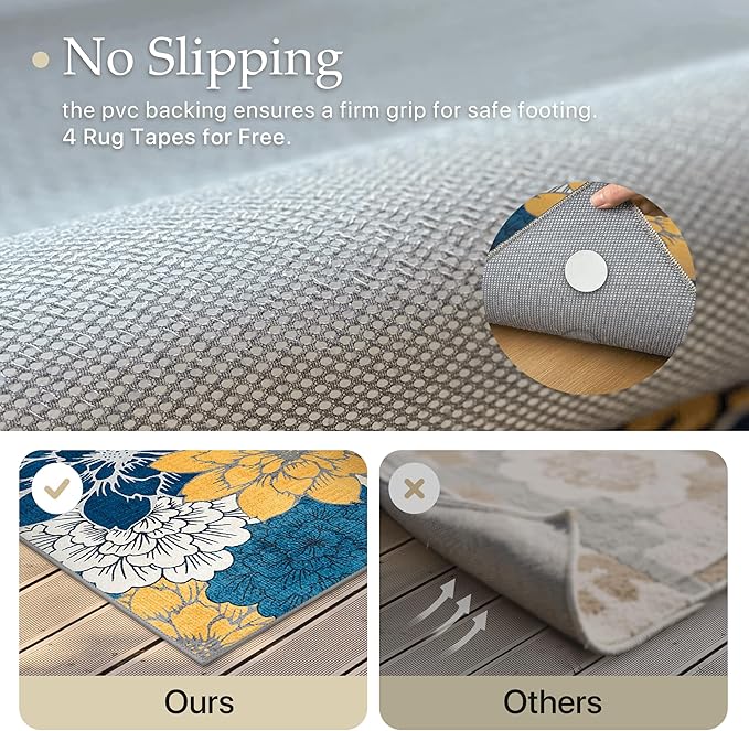 - Non-Slip Backing & Quick-Dry: Crafted with an upgraded three-layer structure, this patio rug features a unique air layer that promotes quick drying and rapid water evaporation, even after rain or spills. The non-slip backing keeps it securely in place on various surfaces, ensuring safety and durability for both indoor and outdoor use