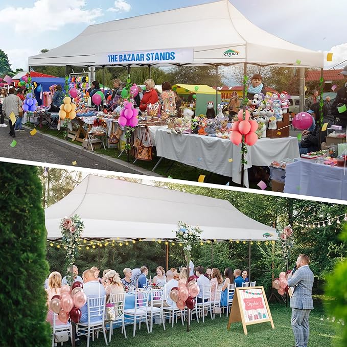 COBIZI 10x30 Pop Up Canopy Tent Heavy Duty with 8 Removable Sidewalls, Commercial Portable Tents for Parties Ez Up Canopy All-Weather Windproof & Waterproof and UPF 80+ Wedding Tent Sun Shelter