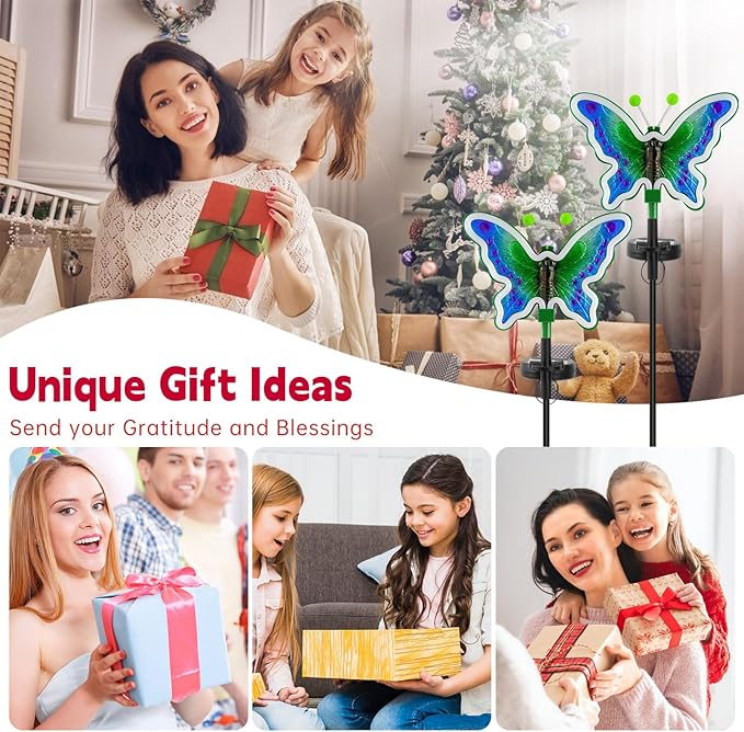 Butterfly Solar Garden Lights, Solar Butterfly Outdoor Lights, Garden Solar Decor for Outside,Solar Neon Lights,Yard Decorations Outdoor (Green,2pack)
