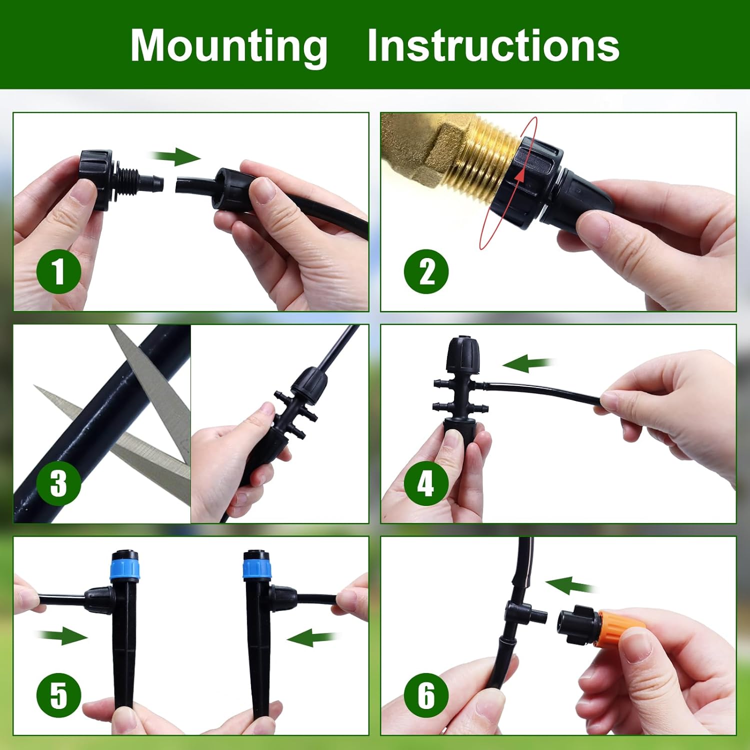 - Easy to Install and Use: This irrigation kit is easy to install, no digging required. Just cut the tube, connect the nozzle or dripper to the fitting and turn on the faucet to start the plant drip irrigation system. You can also soak the end of the hose in hot water for a minute before pushing the fitting in, it will be easier to connect and the tubing will stay tight when it cools down.