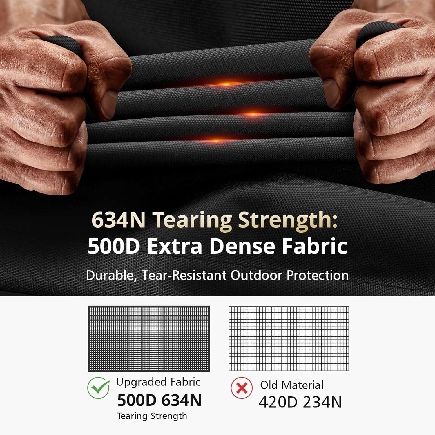 - 【2025 Upgraded Winter Tear-resistant Material】QH.HOME patio heater cover is crafted from premium 500D heavy-duty tear-resistant Oxford cloth. The enhanced material provides three times the tear resistance compared to standard 210D/420D materials, providing year-round protection.