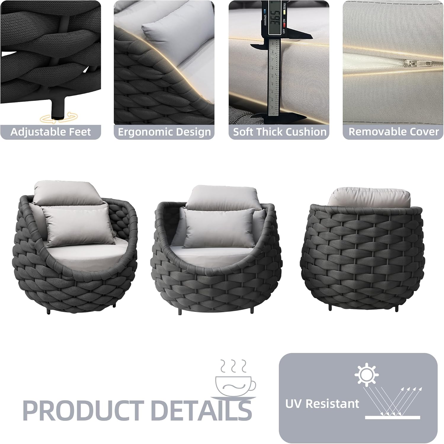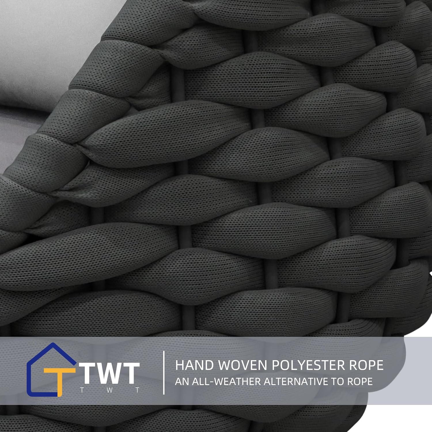 - NO required assembly & easy to clean:Our outdoor couch NO required assembly, just take them out and use. TWT patio chairs’ seat are easy to clean and polyester rope relatively soft. No need to take more extra special care to maintain patio couch