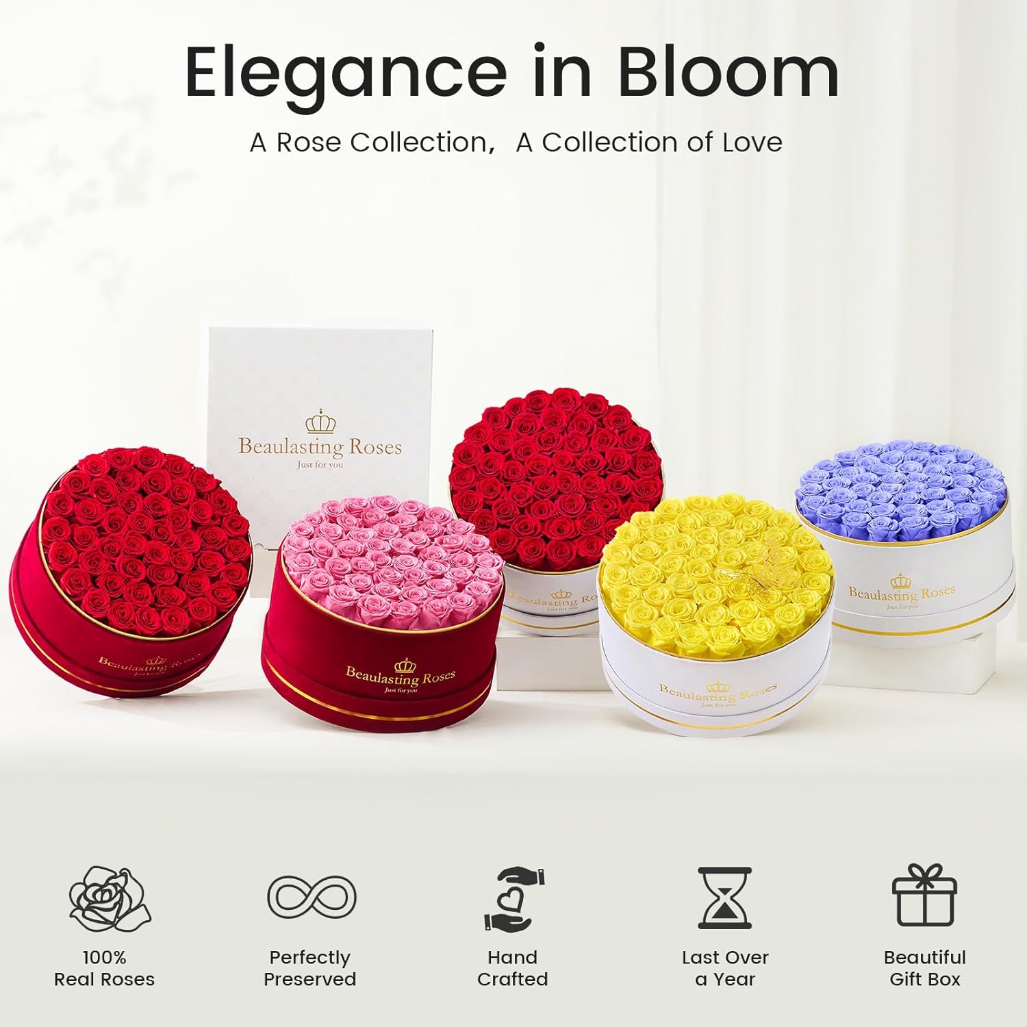 - 100% real roses: Preserved flower boxes are handcrafted using real roses and a luxurious gift box in a variety of colors, styles. All roses are selected from only the choicest blooms