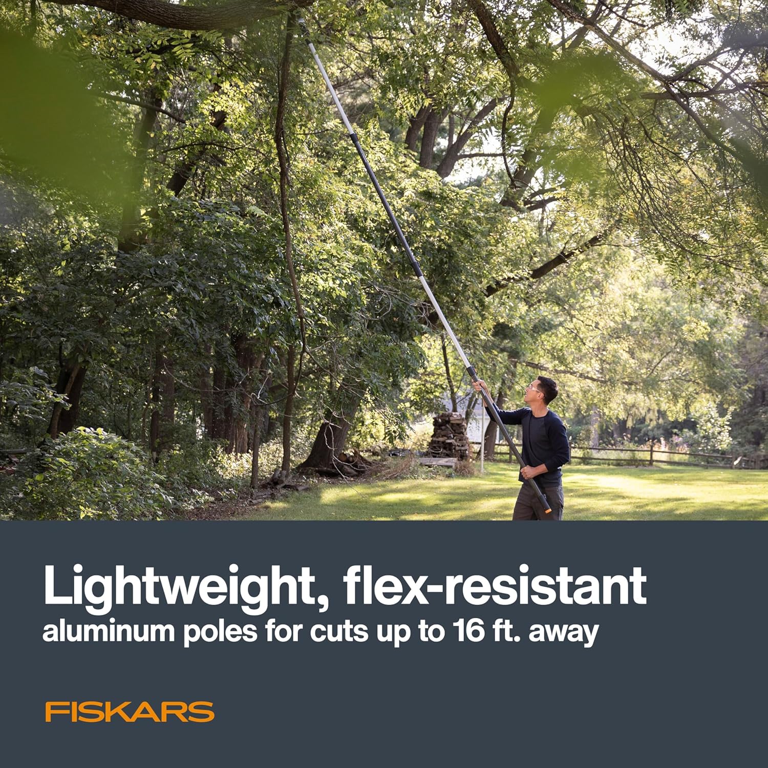 Fiskars XtendControl Extendable Tree Pruner (16 ft), Adjustable Branch Trimmer with 15" X3 Double-Hooked Saw, 4-8 ft Extension Pole, and Secure Locking System for Precision Cutting