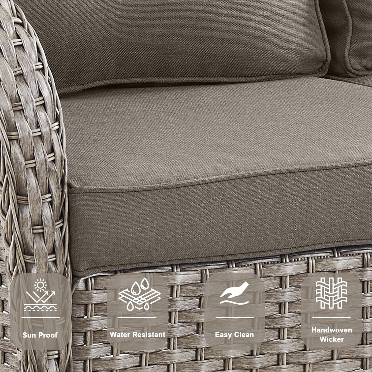 - Unmatched Comfort & Elegance:Each swivel rocker outdoor chair offers smooth 360° rotation and gentle rocking for ultimate relaxation. Paired with sponge ottomans and thick cushions, this patio conversation set ensures all-day comfort. The sofa’s and chair's deep seating and ergonomic backrest create a cozy, inviting atmosphere.
