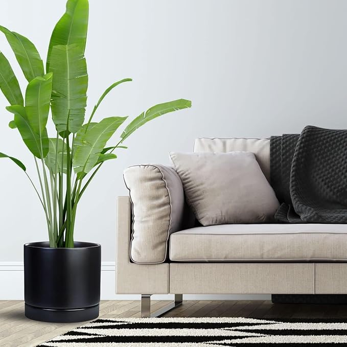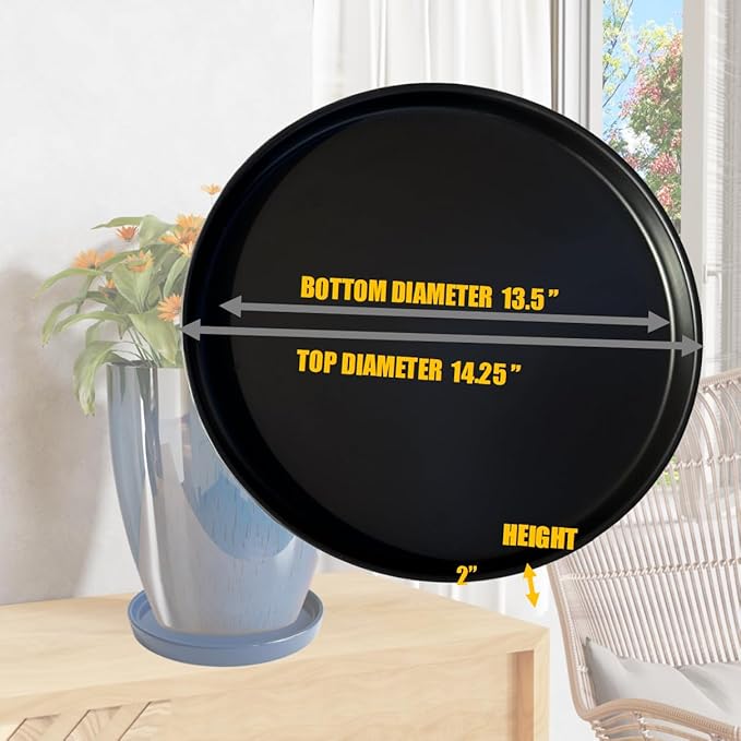 Ceramic Plant Saucer Black Deep Pot Tray - 1 Pack 15 inch, Planter Saucers Water Drip Trays for Indoors Outdoor, Thick Durable Sturdy Flower Pot Saucers for Glazing Pots Base, More Sizes 3-15 inch