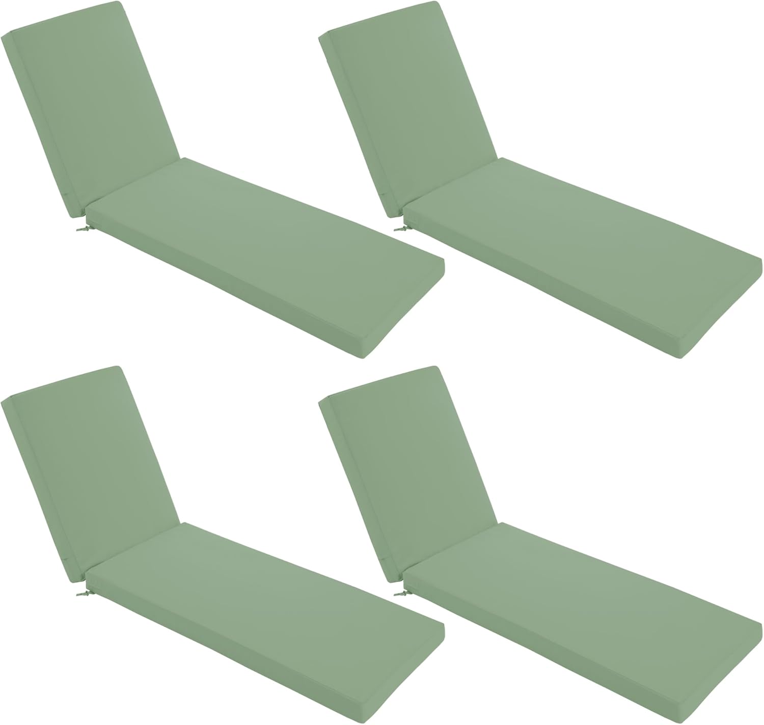 Chaise Lounge Cushions Outdoor Set of 4 - Waterproof and Fade Resistant Sun Lounger Replacement Cushions - Patio Lounger Pads with Removable Cover for Pool, Deck, 72 x 21 x 3 Inch, Sage Green
