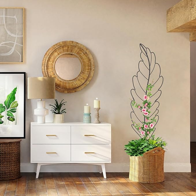 - Optimal Size for Various Spaces: Measuring 59"H x 16"W, our leaf-shaped plant trellis is the perfect size for both indoor and outdoor placement. Its design ensures that your climbing plants receive the support they need to grow healthily and beautifully