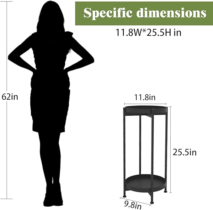 - Space-Saving Corner Design: Designed as a corner plant stand, this two-tier shelf maximizes unused spaces in your home. Its compact size (11.8" diameter, 25.5" height) fits seamlessly into tight areas, making it a perfect small plant stand for living rooms, bedrooms, or offices.