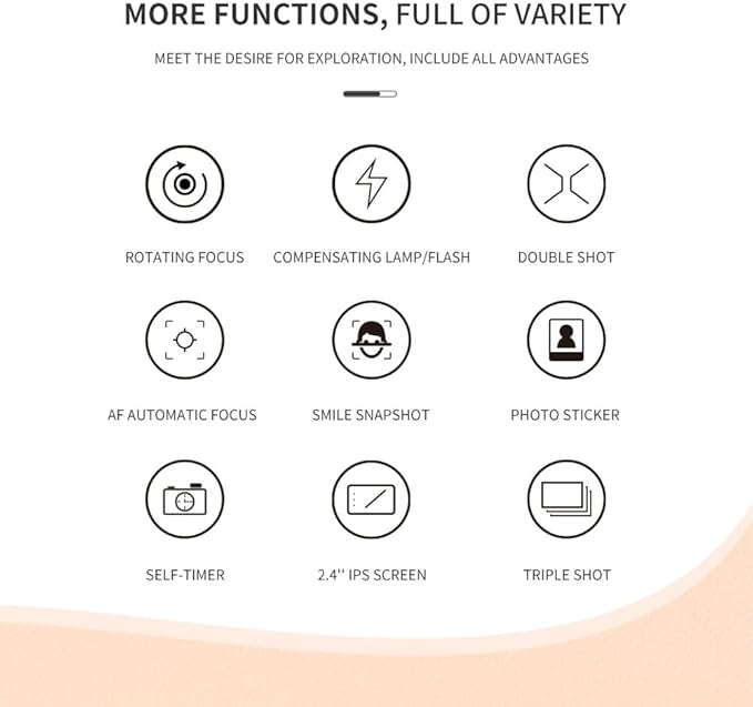 - 【Mini Kids Camera with Big Fun】: Equipped with auto Focus, 32.0 Mega pixels and 1080P Video. Greatly improved the definition of photos . Catch the wonderful joy moment for boys or girls. With Big head sticker shooting, children can take photos with frames, leave some hilarious photos with family or friends