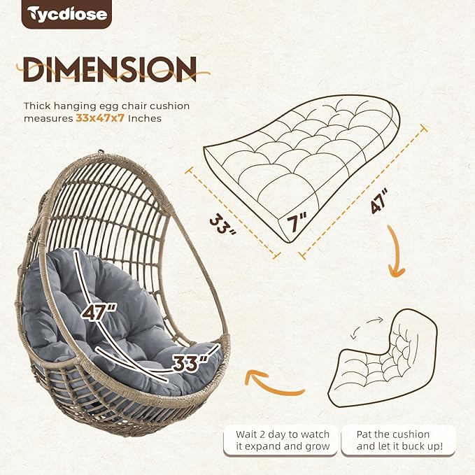 - 🛒【WARM TIPS】-The cushions for hanging egg chair are vacuum compressed packaged. After opening, our waterproof egg chair cushion will be wrinkled for a short time that is a normal phenomenon. Please be patient to leave it for 3-7 days to recover the original shape.
