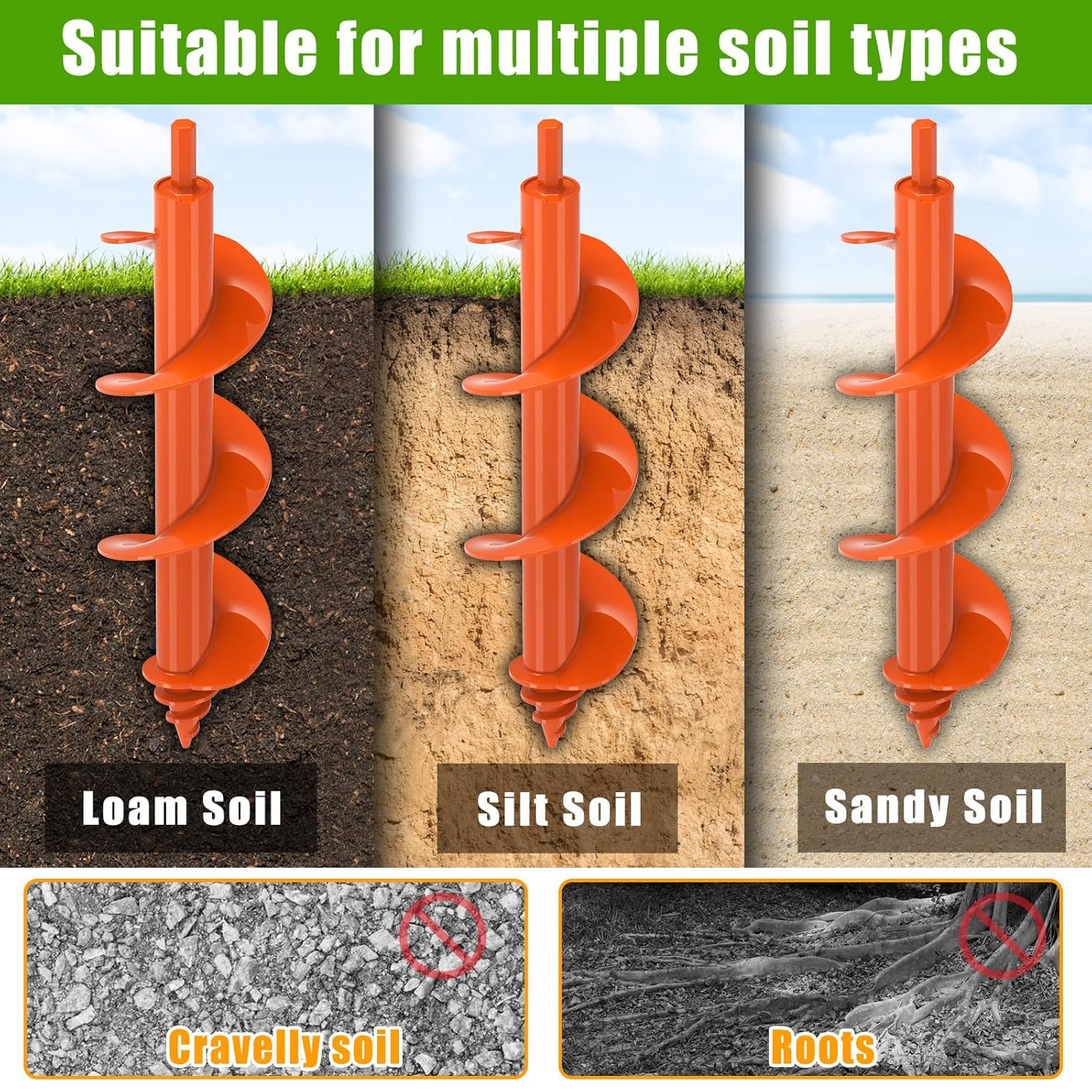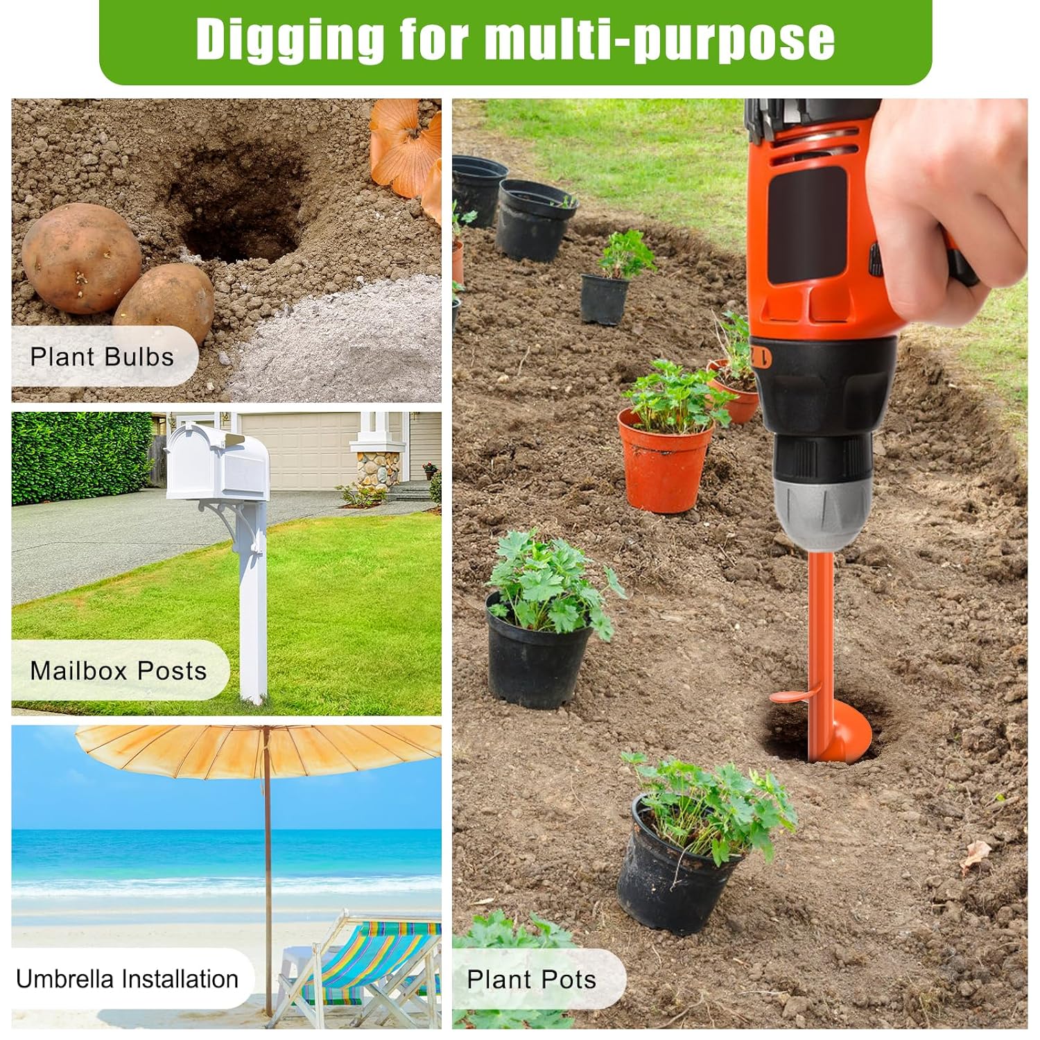 - ๐พ๐๐ ๐ ๐จ๐๐๐๐๐๐๐๐๐๐: This auger post hole digger is a valuable addition to any gardener's toolkit, ideal for digging, mixing, and planting with ease; such as planting bulbs, vegetables and flowers, tubers, rhizomes, trees, reducing the need for post hole diggers to scoop and remove soil, making it more efficient to use a shovel and dig trenches.