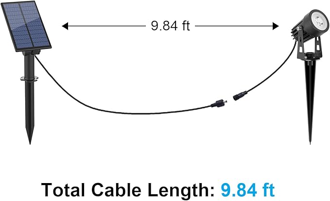 - 【2 installation methods】The solar panel and light can be installed in the ground or mounted on the wall with included screws. Each ground light with 118inch/3m cable, 270° Adjustable freely up or down to meet different requirements