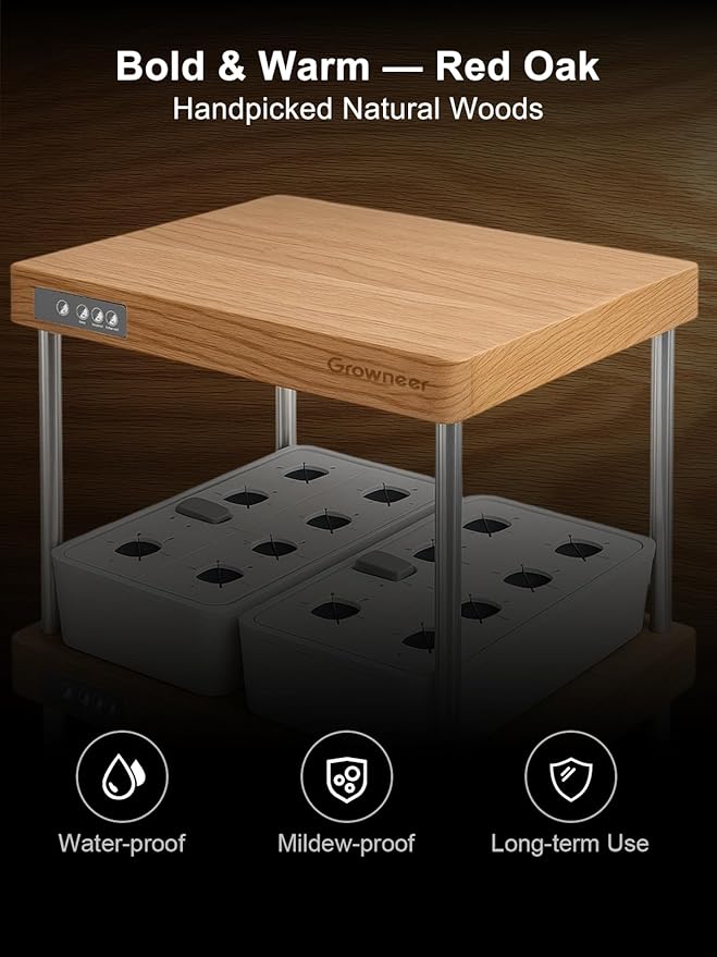 GROWNEER HydroEasy1.0 Hydroponics Growing System Kit, Beginner-Friendly Indoor Garden for Vegetable Fruit Herb, Red Oak Design, Perfect Gift Idea, Full-Spectrum LED Lights for Maximum Growth