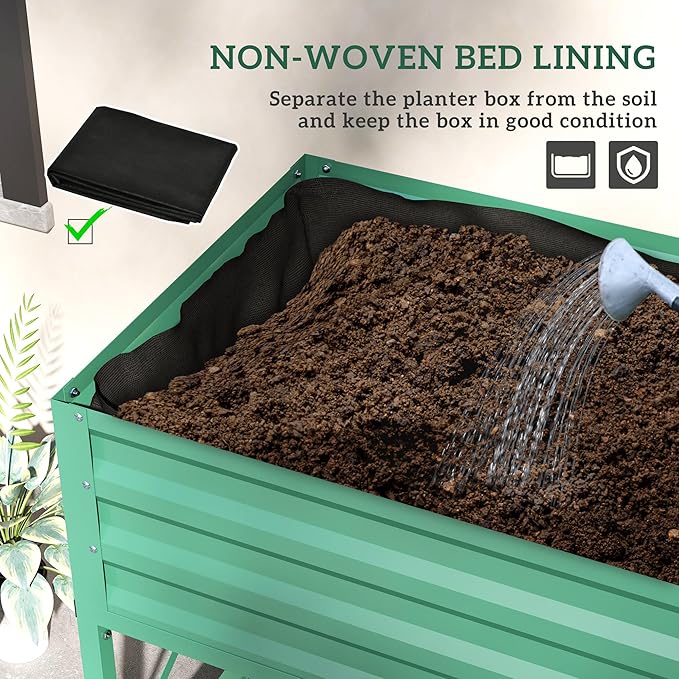 Outsunny Raised Garden Bed with Galvanized Steel Frame, Storage Shelf and Bed Liner, Elevated Planter Box with Legs for Vegetables, Flowers, Herbs, Green