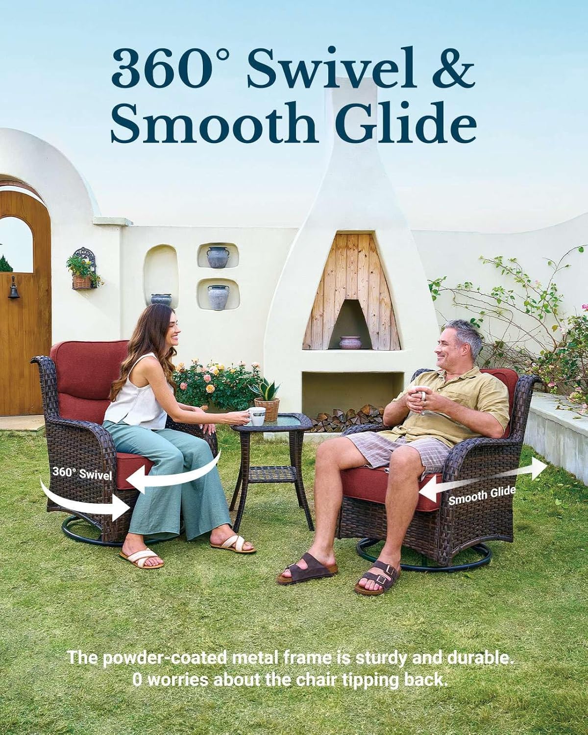 - Smooth 360° Swivel & Glide: Enjoy smooth 360° rotation and gentle rocking for hours of effortless relaxation with this chair. Whether you're sipping tea at sunset, enjoying quiet moments alone, or gathered with friends and elderly loved ones for weekend chats—creating a warm, inviting space for meaningful connections anytime