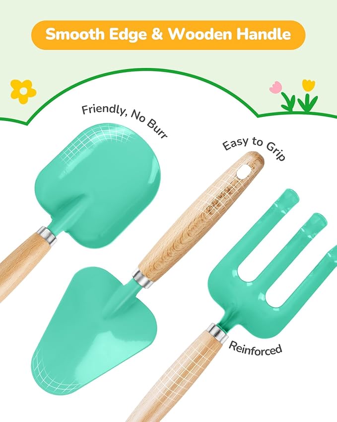 - Fun and Educational: Kids can explore gardening away from screens, developing natural science knowledge and motor skills, and becoming little gardeners with our kids gardening tools.
