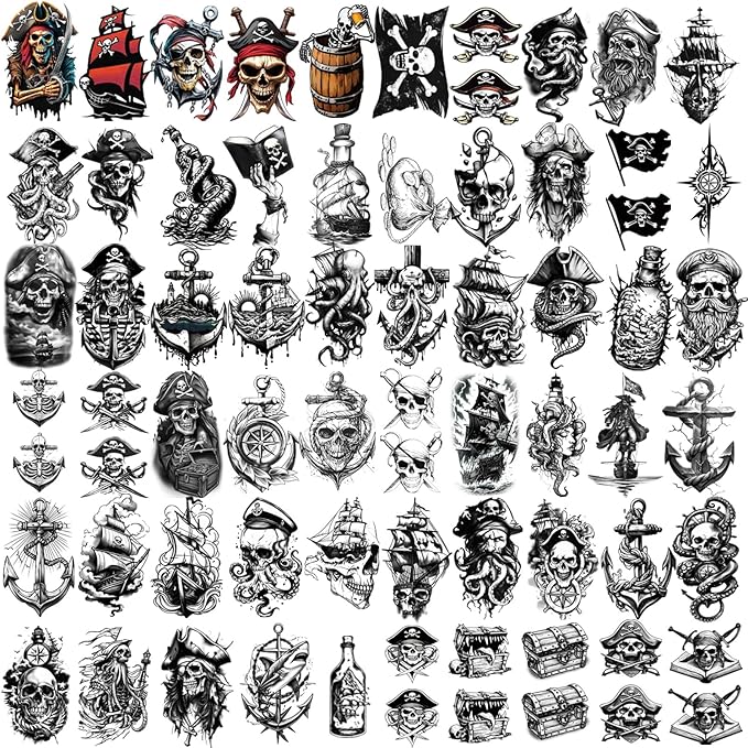 - UNIQUE DESIGN -- Including pirate captain skull corsair compass anchor sword flag and more. Can be attached to various parts of the body, such as arms, hands, shoulders, thighs, waist, back, etc