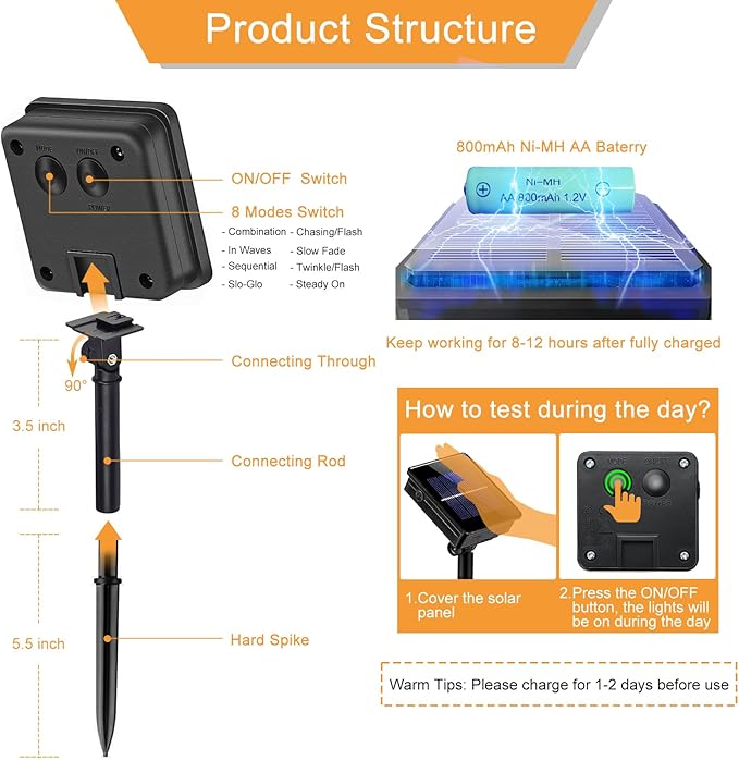- Special Feature : Energy Efficient, 8 Lighting Modes, Memory Function, Waterproof, Solar Powered