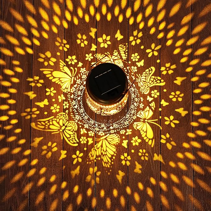 - Beautiful Solar Lanterns for a Cozy Garden - The antique bronze design and butterfly pattern add such a charming touch to your garden. The lanterns cast a warm light at night and create such a peaceful atmosphere. Solar lanterns outdoor hanging lantern lights are a beautiful addition to any garden, yard, or patio space. Designed with a charming butterfly metal decor, making them not only functional but also a stylish enhancement to your outdoor aesthetics.