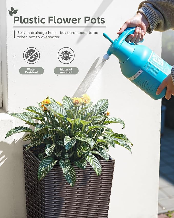 Greesum 24 Inch Tall Plastic Planters with Rattan Texture – Set of 2, Detachable Inner Pot & Drainage Holes, Indoor/Outdoor Decorative Flower Pots for Large Plants, Trees, Patio, and Garden, Brown