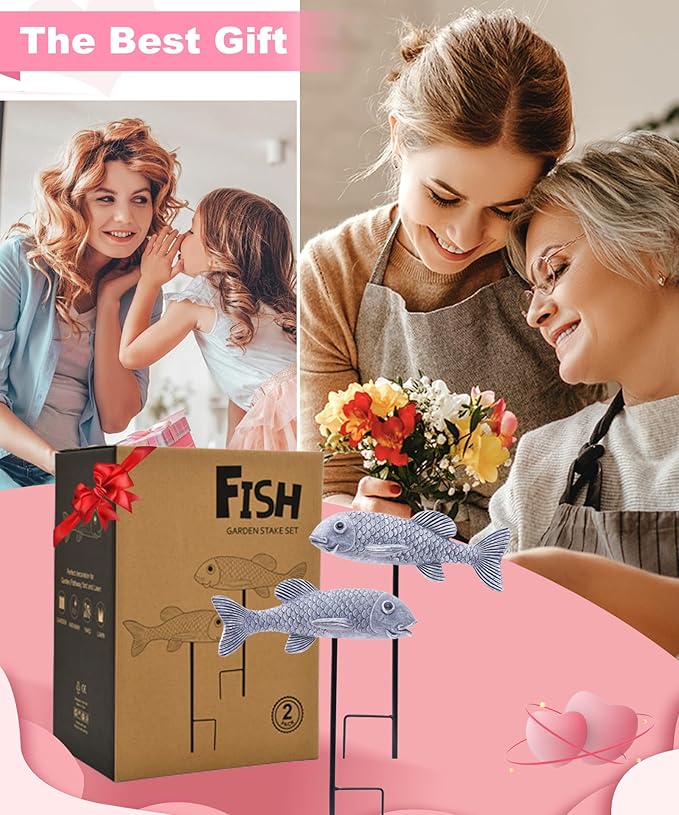 Outdoor Koi Fish Statues 2Pack: Garden Sculpture Ornaments Pond Decor for Yard Lawn Patio Porch Outside Decorative Gifts for Grandma Women Mom